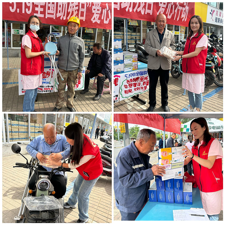 活動面向社會殘疾人士愛心贈送各類醫(yī)療器械(拔罐器、醫(yī)用拐、醫(yī)用固定帶),同時為大眾免費量血壓、測血糖(空腹)。關心詢問他們的身體狀況和生活狀況,叮囑他們注意飲食健康和作息規(guī)律。