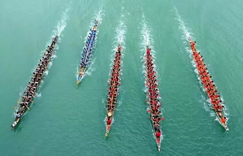 龍船競渡前,先要請龍、祭神。如廣東龍舟,在端午前要從水下起出,祭過在南海神廟中的南海神后,安上龍頭、龍尾,再準(zhǔn)備競渡。并且買一對紙制小公雞置龍船上,認(rèn)為可保佑船平安。